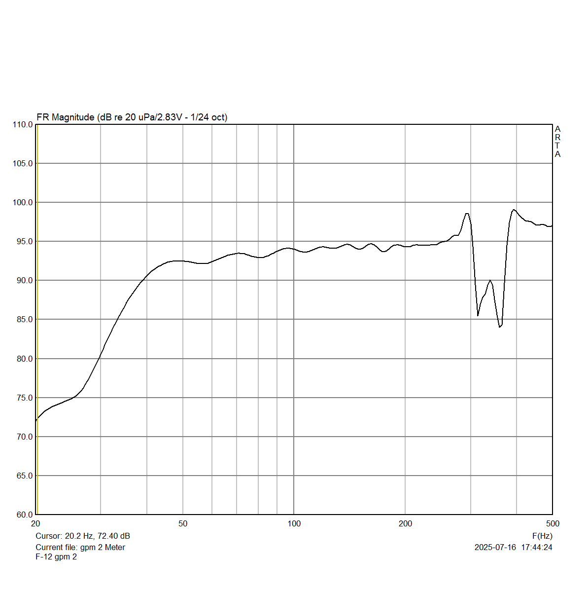 46 HZ (F-5dB) / 34 HZ (F-8dB)